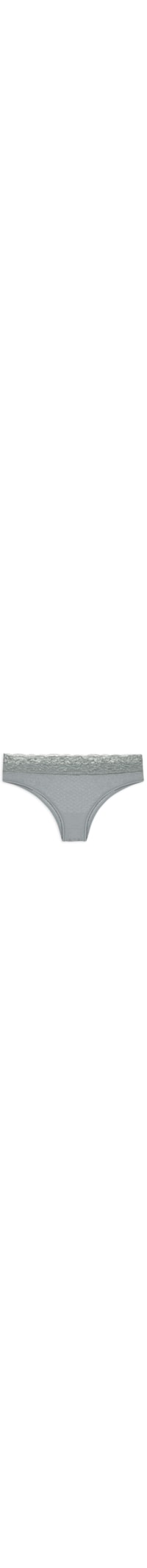 A calcinha azul é confeccionada em malha com superfície texturizada e alta elasticidade. A peça de modelo biquíni possui laterais largas, cós elástico e renda embutidos, forro e acabamento elástico.