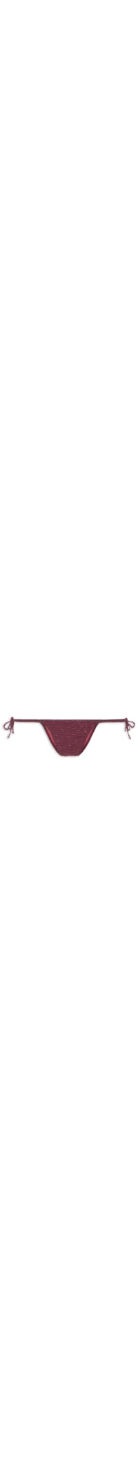 A calcinha vinho é confeccionada em malha de poliamida com superfície em fios de lurex. A peça de modelo tanga possui laterais com tiras finas e ponteiras com aviamento em metal, padronagem de listras, forro em cor contrastante e acabamento pespontado.