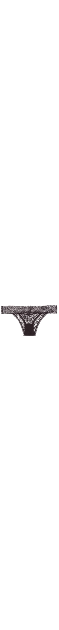 A calcinha preta é confeccionada em renda. A peça de modelo biquini possui transparência, forro de algodão e laterais largas.