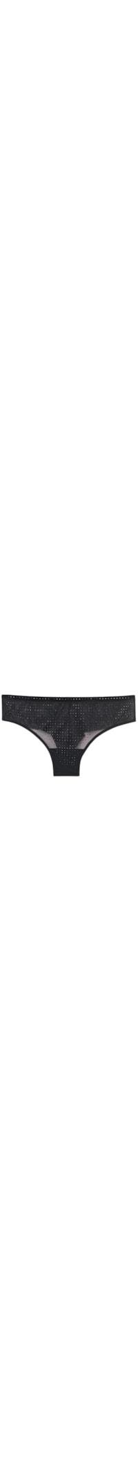 Calcinha brasileira em tule macio e elástico, adornada com micro strass na cor hematite. Possui acabamento em elástico suave com efeito aveludado e aplicação de strass na mesma tonalidade. A parte traseira é em tule forrado, sem elástico nem costuras, garantindo máximo conforto.