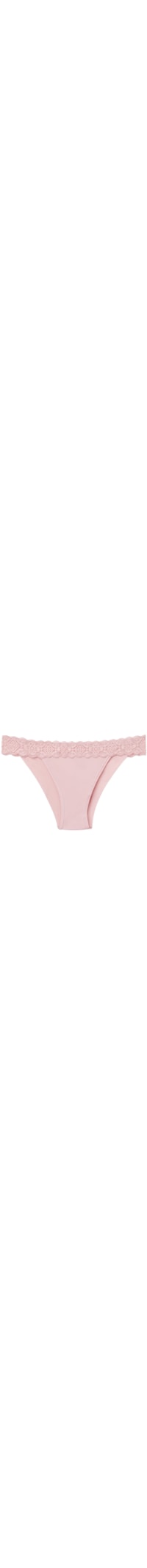 Calcinha brasileira em microfibra macia com cintura em renda, caracterizada pela parte de trás mais larga do que as calcinhas brasileiras clássicas.