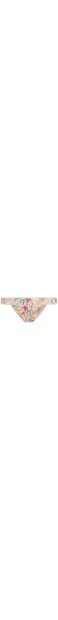 A calcinha bege é confeccionada em malha de poliamida. A peça de modelo tanga possui laterais médias, mix de estampa em cores contrastantes, forro e acabamento pespontado.