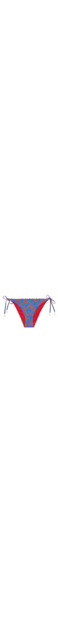 Calcinha de biquíni com laços para amarrar nas laterais e ajustar a peça. O modelo é caracterizado pela estampa de corais em tons vivos, adornado com missangas na cintura. Totalmente forrada (linha Bali). Parece ser uma escolha vibrante e cheia de detalhes encantadores para os dias de sol na praia!