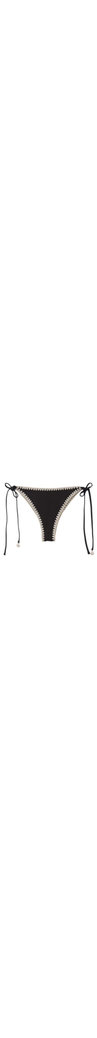 Calcinha de biquíni brasileira com laços laterais ajustáveis, permitindo um ajuste personalizado. O corte levemente arredondado na parte da frente possibilita o uso de forma clássica ou mais cavada, valorizando as curvas. Apresenta um tecido franzido adornado com um bordado em cor contrastante. Totalmente forrada, com costura e franzido central na parte de trás para um ajuste perfeito.