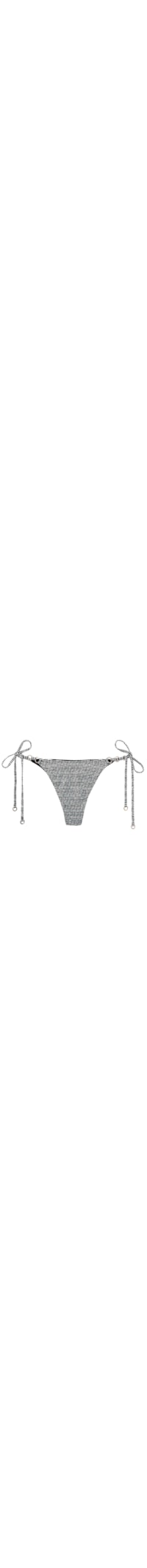 Calcinha de biquíni brasileira com laços para amarrar na lateral. Apresenta um padrão em tons de branco e preto, adornado por um efeito laminado. Completamente forrada e com costuras invisíveis.