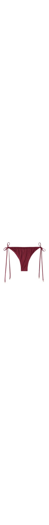 Selecione o tamanhoCalcinha de biquíni brasileira com amarrações nos quadris para ajuste regulável. O estilo é caracterizado por um tecido brilhante com efeito seda, adornado com detalhes franzidos e ponteiras douradas. Totalmente forrada e com costuras invisíveis.