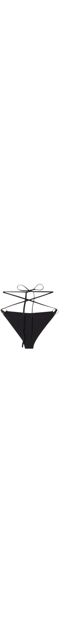 Calcinha de biquíni brasileira com cintura em V à frente e atrás e cava alta estilo anos 80, caracterizada por tiras compridas dos lados que podem ser cruzadas e apertadas com laço na parte da frente. Pormenor moda de argolas isentas de níquel. Tecido em microfibra brilhante shine. Completamente forrada e com costuras invisíveis, pensadas para não marcar.