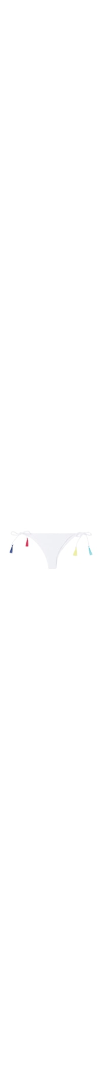 Calcinha de biquíni brasileira com laços finos de apertar no quadril, que permitem ajustar a peça. O tecido em microfibra macia é adornado com barras em cor contrastante. Completamente forrada e com costuras invisíveis, pensadas para não marcar a figura. Parte de trás com costura central para um melhor ajuste.