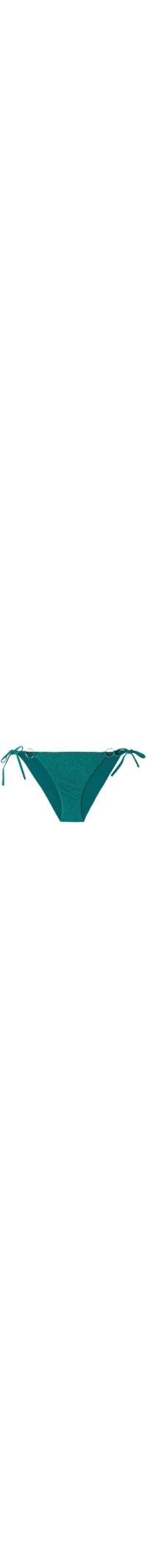 Calcinha de biquíni com laços finos para amarrar nas laterais, permitindo ajustar a peça conforme desejado. Feita de tecido macio com fio lamé brilhante e decorada com argolas douradas sem níquel. Totalmente forrada e com costuras invisíveis, projetadas para não deixar marcas na figura.