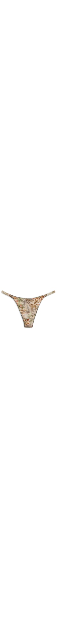 Calcinha de biquíni fio dental com laterais ajustáveis. A cintura ligeiramente arredondada na parte da frente permite usá-la de forma clássica ou mais cavada, conforme as formas do corpo. Produzida em microfibra macia, apresenta um sofisticado estampado de folhagem. Completamente forrada e com costuras invisíveis.