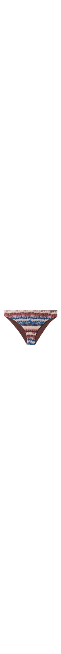 Calcinha de biquíni completamente forrada e com costuras invisíveis. Caracterizada por uma estampa com efeito tie-dye sobre um tecido lamê brilhante.