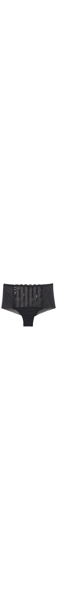 Selecione o tamanhoCalcinha estilo culotte em tule macio e elástico, com bordado de paetês em padrão geométrico na parte frontal. Acabamentos elegantes em cetim. A parte traseira e as laterais são em tule duplo, sem elástico nem costuras, garantindo máximo conforto.