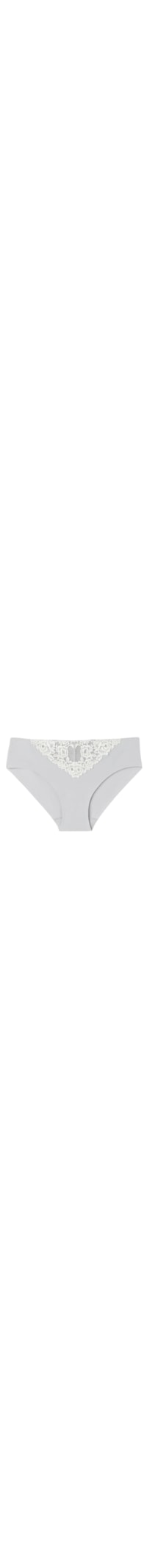 Calcinha em algodão elástico sem costuras nas laterais, adornadas por uma aplicação em renda na parte da frente. Dependendo da cor escolhida, a renda pode ser de cor contrastante ou tom sobre tom. Forro 100% algodão na área entrepernas.