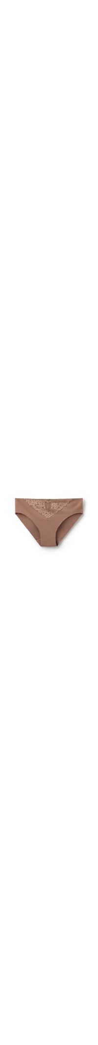 Selecione o tamanhoCalcinha em algodão elástico sem costuras nas laterais, adornadas por uma aplicação em renda na parte da frente.