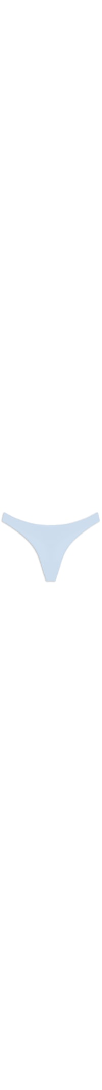 A calcinha azul é confeccionada em malha de poliamida com alta elasticidade. A peça de modelo fio dental possui cintura baixa, laterais médias e forro.