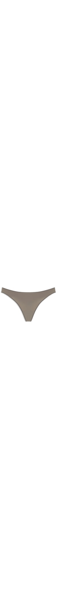 A calcinha marrom é confeccionada em malha de microfibra de média elasticidade. A peça de modelo fio dental possui cintura baixa, laterais médias, tag da marca aplicada na parte posterior, forro e acabamento overlocado.