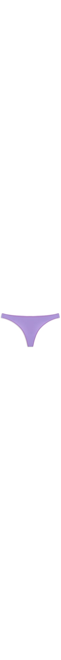 A calcinha roxa é confeccionada em malha microfibra com alta elasticidade. A peça de modelo fio dental possui laterais médias, recorte posterior, tag da marca bordada na parte posterior, recorte posterior e forro.
