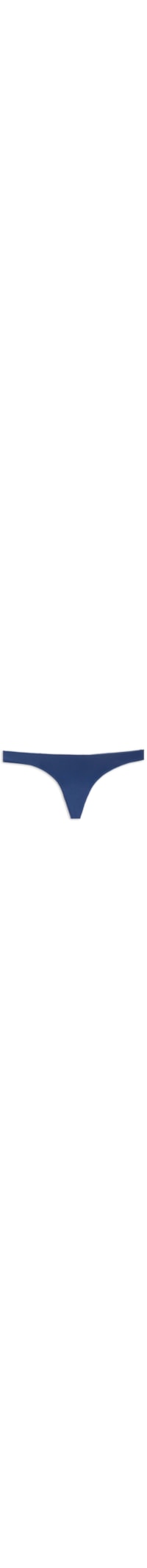 A calcinha azul é confeccionada em malha com alta elasticidade. A peça de modelo fio dental possui cintura baixa, laterais médias e forro.