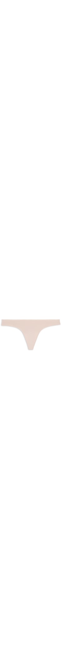 A calcinha bege é confeccionada em malha de poliamida. A peça de modelo fio dental possui cintura média, laterais médias, forro aplicado e acabamento elástico.
