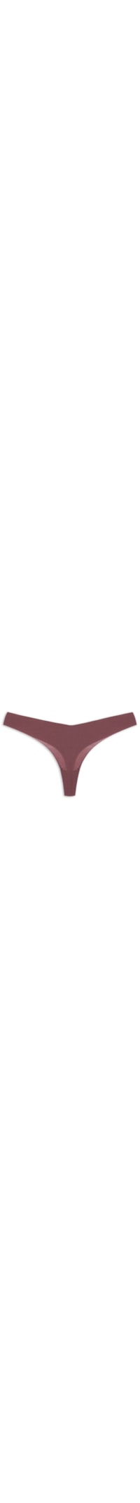A calcinha vinho é confeccionada em malha microfibra. A peça de modelo fio dental possui laterais médias, forro, cavas alongadas e acabamento em corte a fio.