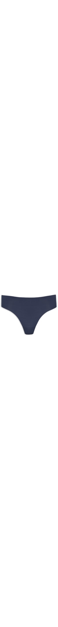 A calcinha azul marinho é confeccionada em microfibra de média elasticidade. A peça de modelo fio dental possui cintura média, laterais largas, recorte posterior, meio forro e acabamento em corte a fio.