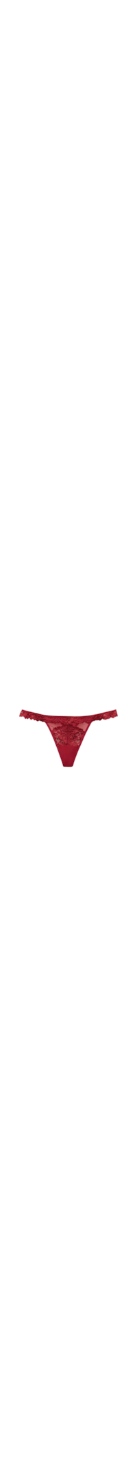 Calcinha fio dental em renda e tule com tiras laterais e uma barra de renda. Dependendo da cor escolhida, a renda pode ser de cor contrastante ou tom sobre tom. Forro 100% algodão na área entrepernas.