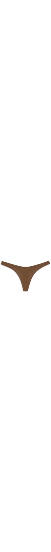 A calcinha marrom é confeccionada em malha de poliamida com média elasticidade. A peça de modelo fio dental possui cintura baixa, laterais médias e forro.