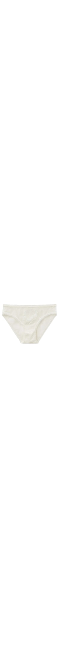 Calcinha em elegante renda elástica com aplicação floral decorada com paetês e miçangas em tom sobre tom, que adicionam um toque de brilho. Parte de trás em microfibra macia, com acabamentos românticos na barra de renda.