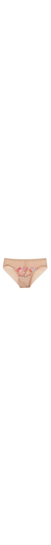 Calcinha com bordado floral colorido e alegre, combinada com tule transparente em tom nude. Parte traseira em tule macio forrado, sem elástico nem costuras, garantindo máximo conforto.