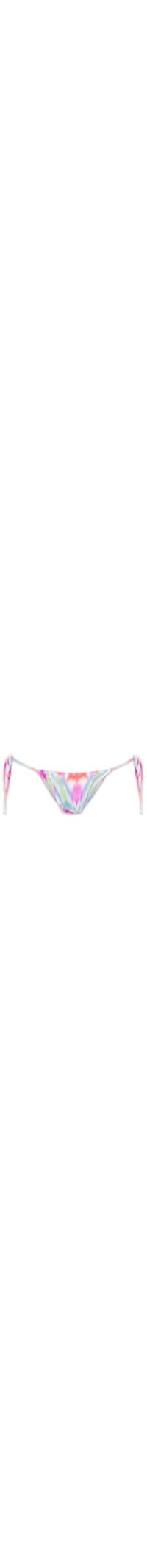 A calcinha rosa é confeccionada em malha de poliamida com média elasticidade. A peça de modelo tanga possui tiras finas estendidas para amarração, tag metalizada da marca aplicada na parte posterior, forro, estampa tie dye em tons contrastantes e acabamento elástico.