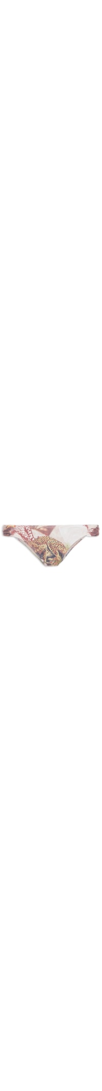 A calcinha marrom é confeccionada em malha de poliamida. A peça de modelo tanga possui laterais médias com detalhe de pregas, mix de estampas, forro e acabamento pespontado.