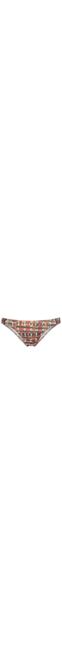 A calcinha laranja é confecionada em malha de poliamida. A peça de modelo tanga possui laterias médias elásticas, estampa abstrata em cores contrastantes, forro e acabamento pespontado.