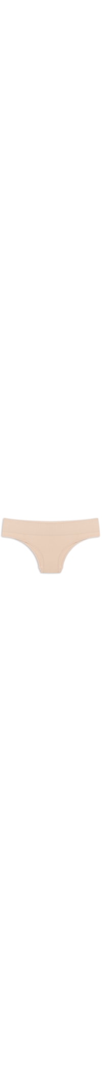 A calcinha bege é confeccionada em malha com superfície texturizada e alta elasticidade. A peça de modelo biquíni possui cintura alta, laterais médias, nome da marca aplicada na parte posterior e acabamento elástico.