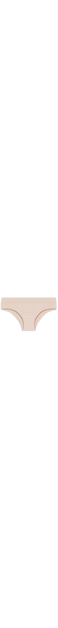 A calcinha bege é confeccionada em malha de poliamida. A peça de modelo tanga possui cintura média, cós aplicado, shape justo, laterais médias e acabamento elástico.