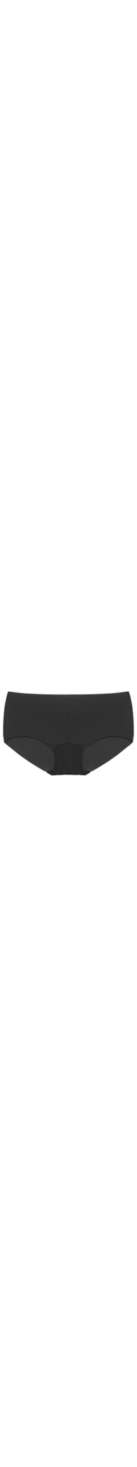 A calcinha preta é confeccionada em malha de poliamida. A peça possui laterais largas, forro em algodão e acabamento pespontado.