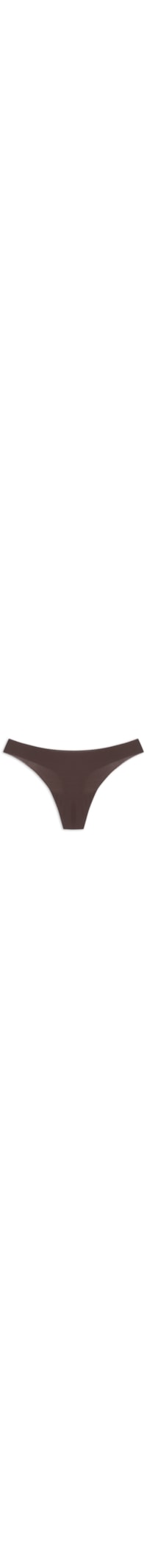 A calcinha marrom é confeccionada em malha de poliamida com média elasticidade. A peça de modelo tanga possui cintura baixa, laterais médias, forro e acabamentos sem costura.
