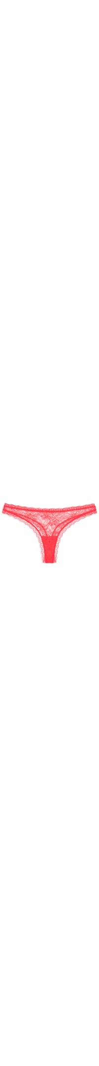 A calcinha vermelha é confeccionada em renda com média elasticidade. A peça de modelo tanga possui cintura baixa, laterais médias, parte posterior fio dental, transparência e forro.