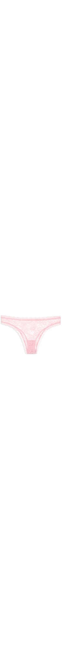 A calcinha rosa é confeccionada em renda. A peça de modelo tanga possui cintura baixa, laterais médias, forro e transparência.