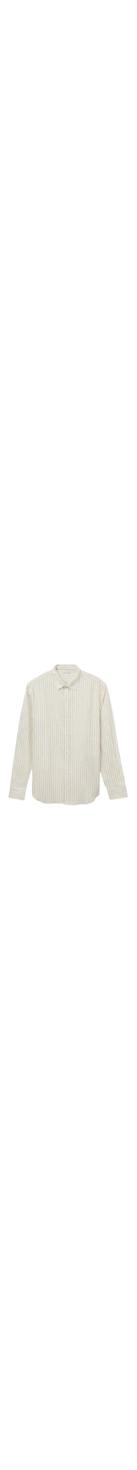 Camisa de manga comprida em linho e algodão, com gola e punhos. Possui detalhe dobrado nas costas e caimento reto. O modelo tem 1,85 m de altura e veste o tamanho G