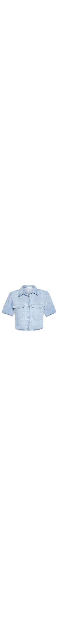 A camisa azul é confeccionada por sarja com lavagem em jeans sem elasticidade. A peça solta ao corpo possui gola colarinho, mangas curtas e barra com acabamento destroyd*, dois bolsos frontais, recorte posterior, fechamento por botões e comprimento cropped**.