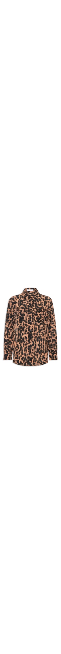 A camisa animal print é confeccionada em tecido leve sem elasticidade. A peça solta ao corpo possui colarinho clássico, mangas longas com abotoamento nos punhos, padronagem de animal print e fechamento frontal por botões.