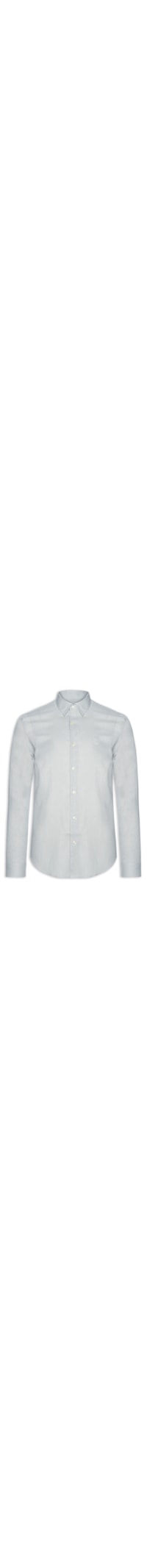 A camisa cinza é confeccionada em linho misto sem elasticidade. A peça solta ao corpo possui colarinho clássico, mangas longas com abotoamento, recorte posterior, logo da marca bordado na altura do tórax e fechamento frontal por botões.