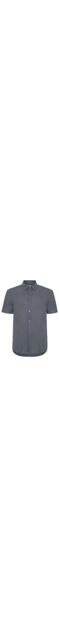 A camisa cinza é confeccionada em linho misto sem elasticidade. A peça solta ao corpo possui colarinho clássico, mangas curtas e fechamento frontal por botões.