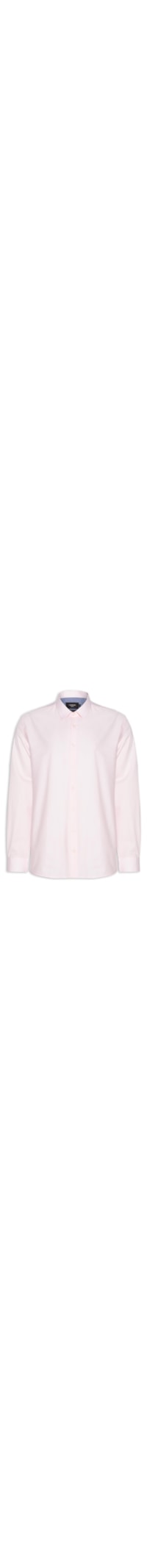 A camisa rosa é confeccionada em tricolina sem elasticidade. A peça solta ao corpo possui colarinho clássico, mangas longas com abotoamento nos punhos, recorte posterior, logo da marca bordado na altura do tórax e fechamento frontal por botões.
