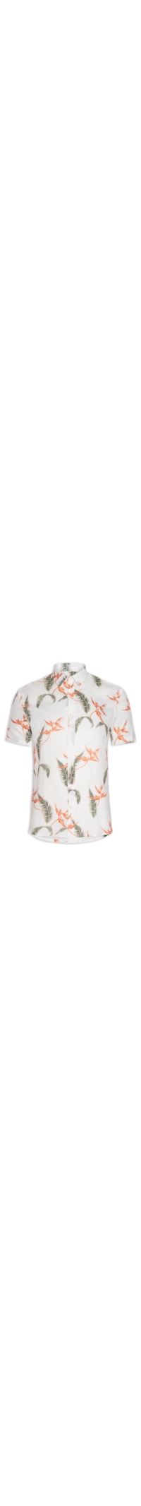 a camisa Off White é Confeccionada Em linho. A Peça Possui Colarinho Francês, Mangas Curtas, Estampa De Folhagem Em Cores Contrastantes, Recorte Posterior Com Tag Da Marca Aplicada Em Resina, Barra Arredondada, Shape Solto, Caimento Reto, Acabamento Pespontado E Fechamento Frontal Por Botões.