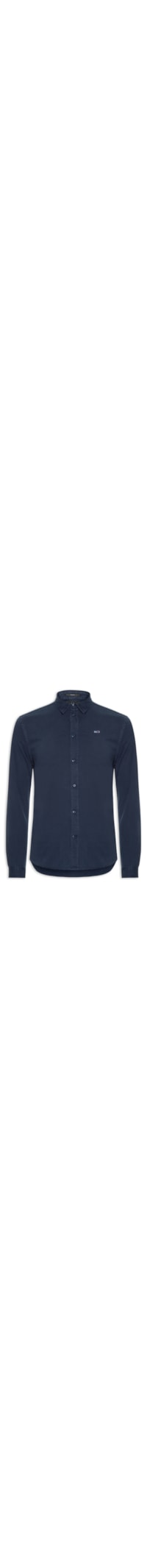 A camisa azul é confeccionada em oxford sem elasticidade. A peça solta ao corpo de modelo regular fit possui colarinho clássico, mangas longas com ajuste nos punhos, logo da marca bordado na parte frontal, barra arredondada, recorte posterior com tag da marca e fechamento frontal por botões.