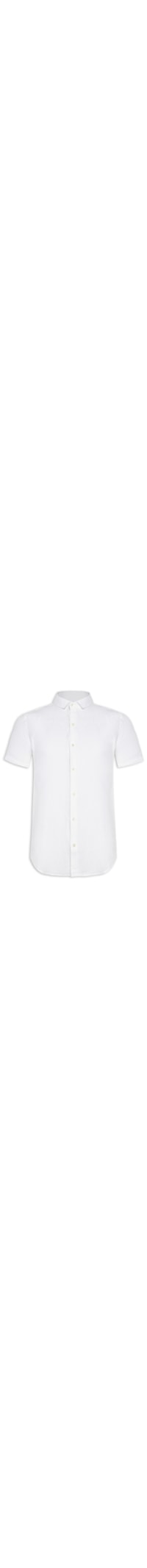 A camisa branca é confeccionada em linho. A peça possui colarinho simples, mangas curtas, recorte posterior, shape solto, caimento reto, acabamento pespontado e fechamento frontal por botões.