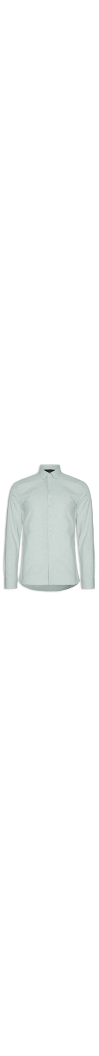 A camisa verde é confeccionada em oxford sem elasticidade. A peça solta ao corpo de modelagem slim possui gola americana, mangas longas com abotoamento nos punhos, logo da marca bordado na altura do tórax, recorte posterior com prega, barra mullet*, efeito mescla e fechamento frontal por botões.