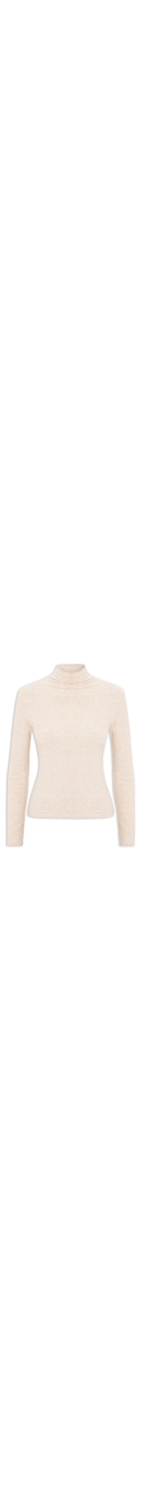 A blusa bege é confeccionado em malha leve, com efeito canelado. A peça é justa ao corpo e possui gola alta, manga longa . Sem fechamento e barra reta.