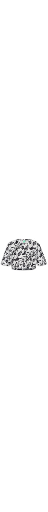 A camiseta preta é confeccionada em malha de algodão de média elasticidade. A peça solta ao corpo, possui decote redondo, mangas curtas, estampa figurativa de conchas em cor contrastante, barra mullet* arredondada e comprimento cropped**.
